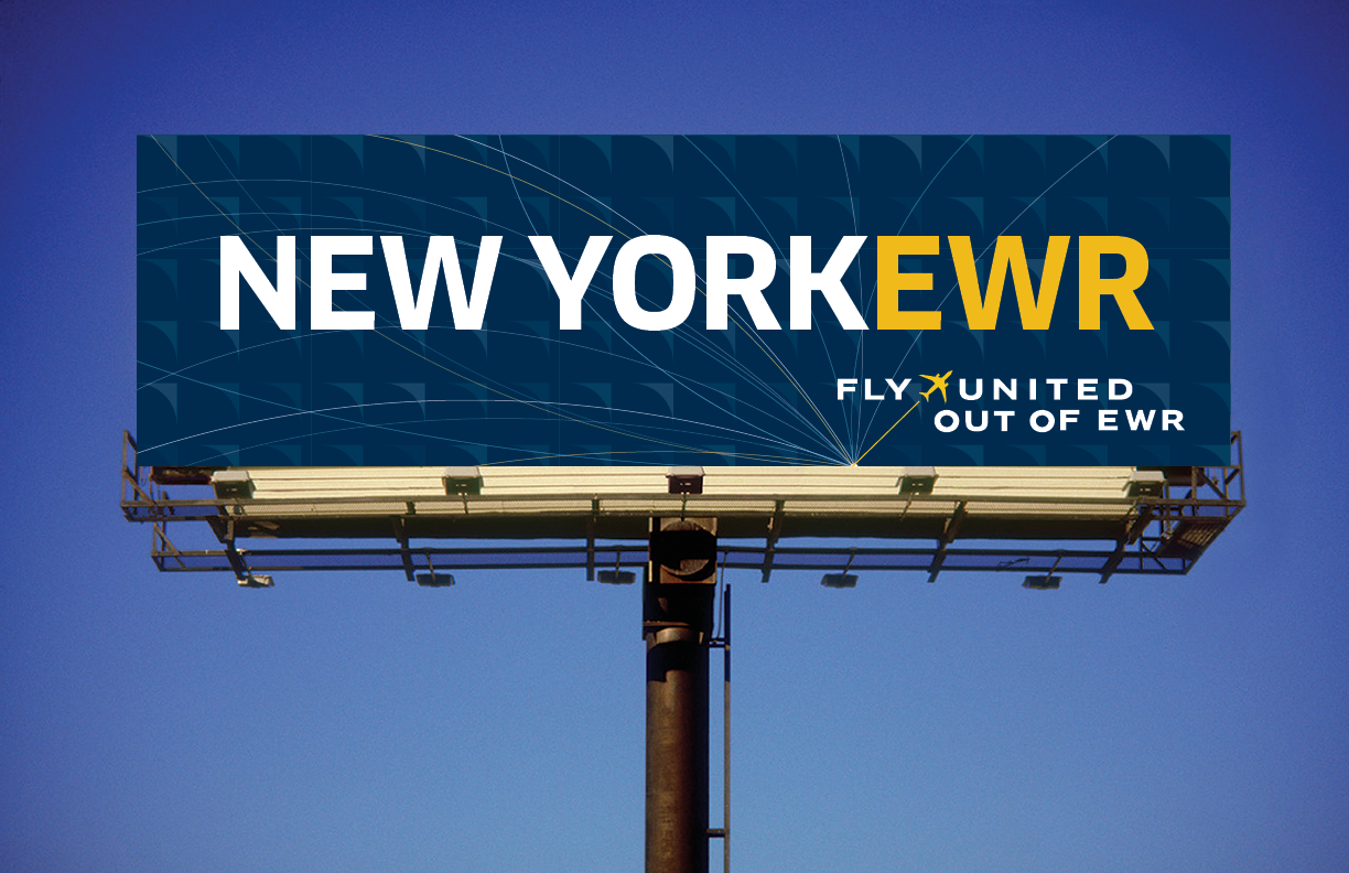 Newark Airport, also known as EWR is United's New York City hub. The challenge was to encourage New Yorkers to choose EWR while communicating what makes it better and we did it in nearly one word. It's closer, faster to get to and with recent upgrades, better than ever before. This was a rare project where design discovered the writing.